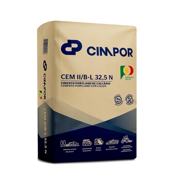 Cimento Portland de Calcário, constituído por clínquer e fíler calcário. Especialmente indicado para todo o tipo de argamassas e trabalhos de construção civil de carácter geral. Indicado para betões de resistência moderada. Adequado para betonagens de grandes massas.