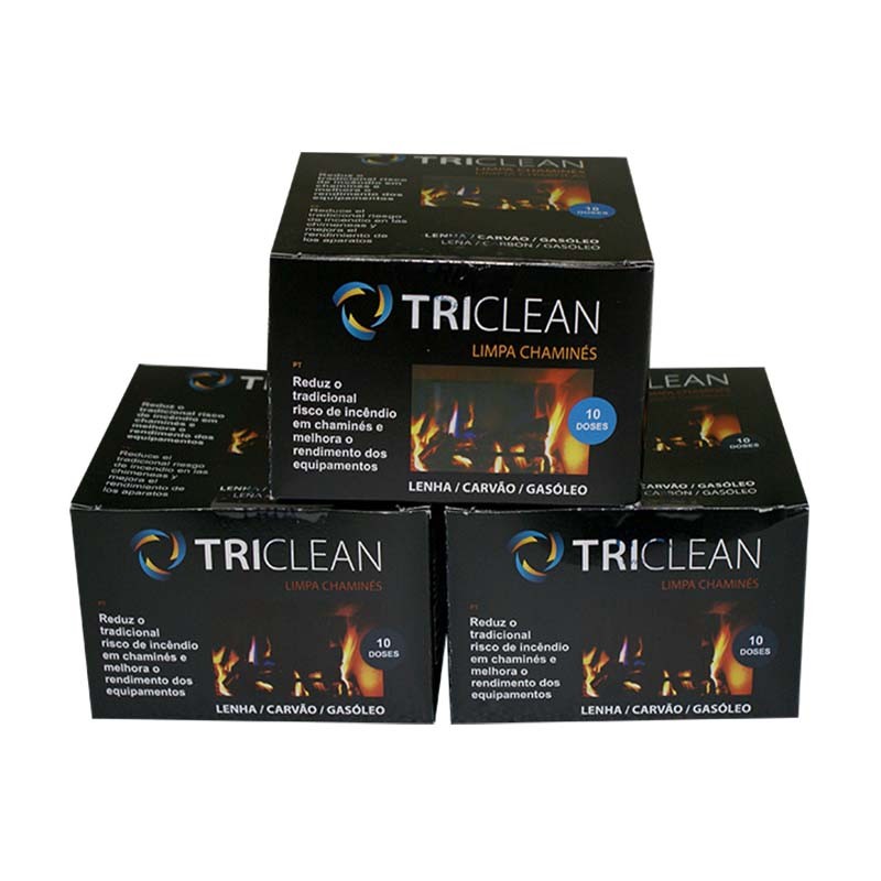 Limpa chaminés da marca TriClean que contém 10un de 50gr cada uma.
