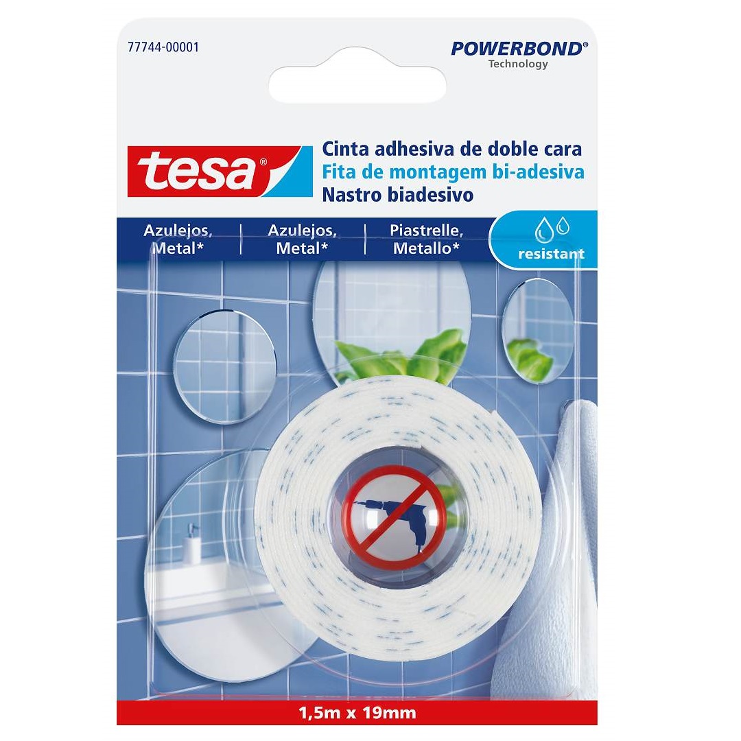 A fita de montagem bi-adesiva para azulejos e metal tesa® foi especialmente desenvolvida para fixar espelhos e outros objetos fino (com até 4mm de espessura) em superfícies sólidas e lisas como azulejos, metal e a maior parte dos plásticos, mesmo em ambientes húmidos como casas-de-banho. Compensa as pequenas irregularidades da superfície. É fácil e simples de utilizar: não vai precisar de outras ferramentas além de uma tesoura. Assegura um suporte durável e fiável.