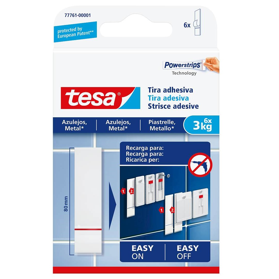 As tiras adesivas para azulejos e metal 3 kg tesa® são a recarga para o prego adesivo para azulejos e metal 3 kg. Permitem que o prego possa ser reutilizado, o que é ótimo para a carteira e para o ambiente. Pode também usá-las para fixar objetos diretamente na parede. Pendure fotografias e decorações sempre que quiser e mude-as de lugar quando lhe apetecer porque as tiras não deixam vestígios quando são removidas.